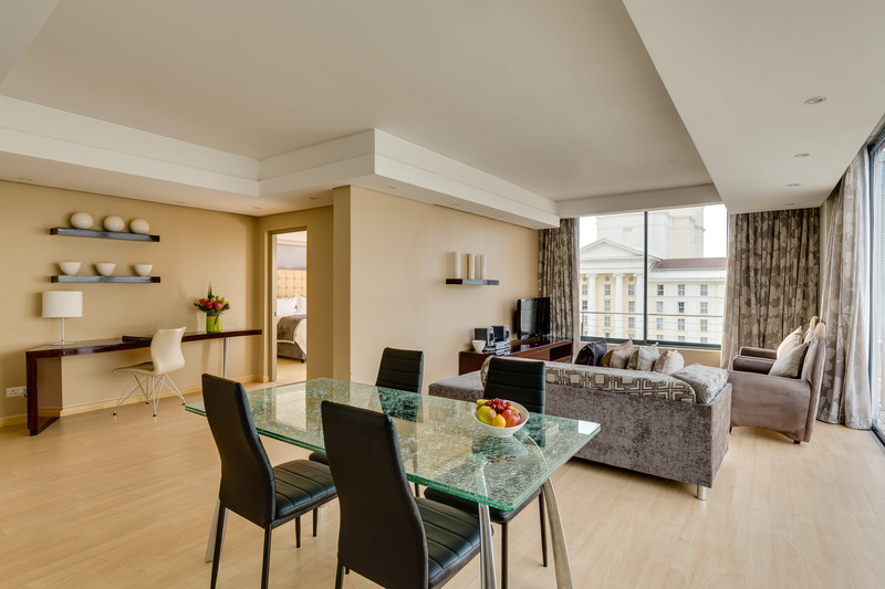The hotel is situated within walking distance of the Victoria & Alfred Waterfront, Cape Town CBD and the Cape Town International Convention Centre. Nearby facilities hotel include a Virgin Active Gym (500 m away), golf at Metropolitan Golf Course (5 km), Mowbray (12 km) and Rondebosch (15 km).||Its secure, central city location makes it ideal for conference, business and leisure travellers wanting to explore Cape Town and surrounds, even a beach holiday in Cape Town is possible from this ideal.||Comprises one-bedroom apartments, two-bedroom apartments and penthouse suites, with three bedrooms. All rooms and suites are en-suite, with well-equipped kitchenette and separate lounge/dining areas.||The hotel's in-house gym is open 24h and is complimentary to guests along with the rooftop swimming pool.||The hotel restaurant offers a full English breakfast buffet, lunch & dinner a la carte.||Travelling on the N1 and N2 towards Cape Town (from Cape Town International Airport).